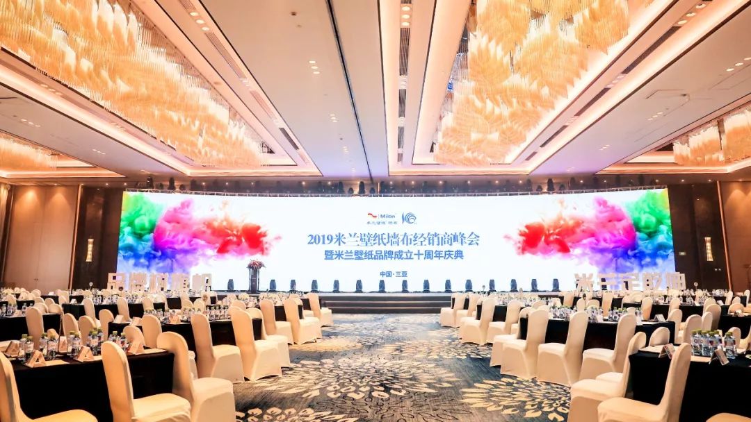 2019年5月,“品牌树旗帜 米兰定乾坤”米兰壁纸·墙布2019全国经销商峰会暨米兰壁纸品牌成立十周年庆典,于三亚理文索菲特度假酒店隆重举行。