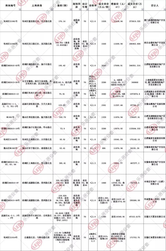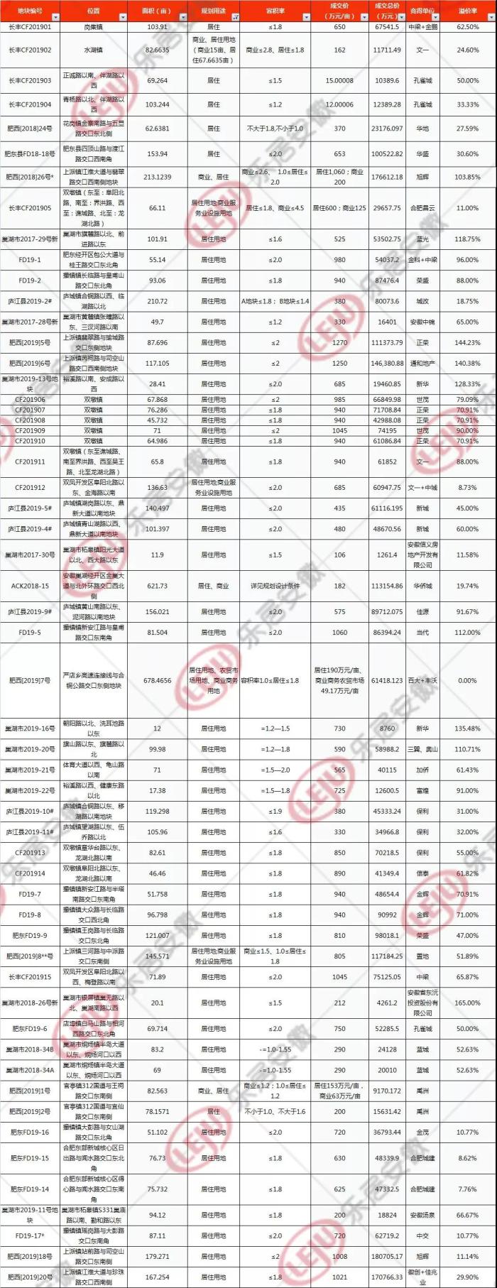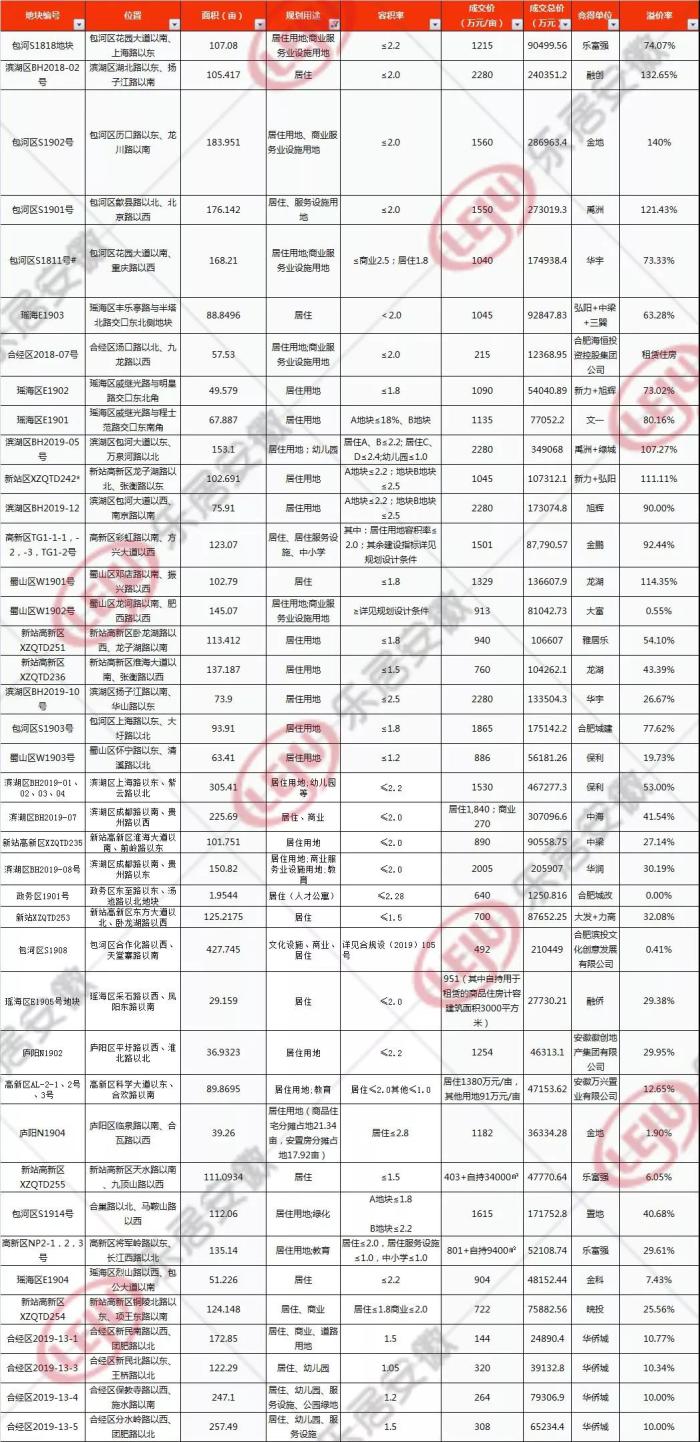 合肥2019各区域土拍成绩单曝光,滨湖又是第一
