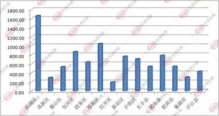 从各区域土地成交面积来看,成交面积超1000亩的区域有滨湖区、包河区、经开区、长丰县、肥东县、肥西县、巢湖市,其中,肥西县、经开区、包河区名列前三甲。