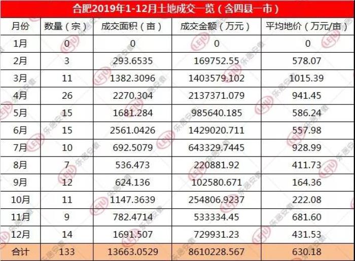合肥2019各月土拍成绩单曝光,4月勇夺第一