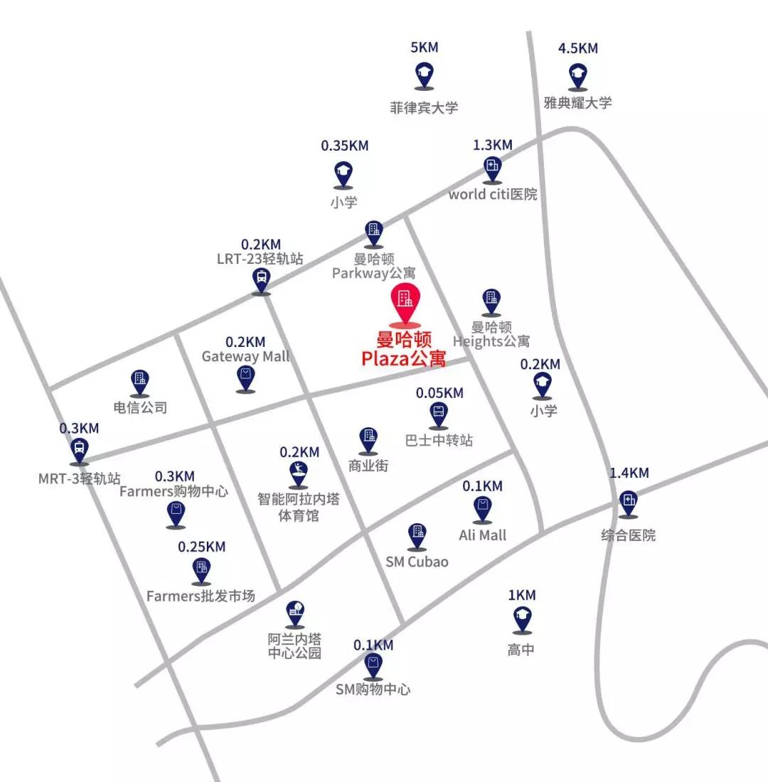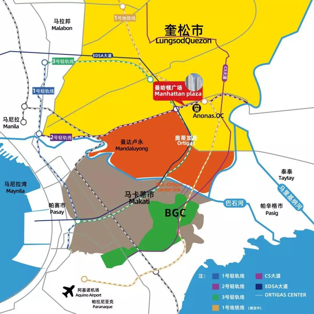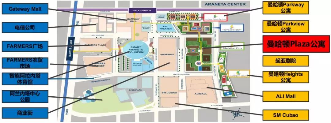在拥堵的马尼拉,有这么一个社区,毗邻2个轻轨站,位于2条轻轨线的交汇处,未来地铁站也在不远处。周边被高级购物中心,写字楼,著名学府和大型演艺中心环绕,它就是曼哈顿PLAZA(Manhattan Garden四期)。
