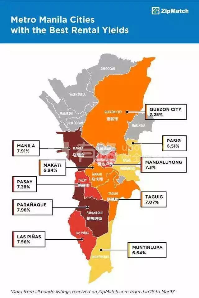 根据新加坡的PropertyGuru的最新数据显示,奎松被列为马尼拉大都会受欢迎的五个城市之一。报告指出,基于菲律宾共管公寓市场的发展,该市房地产的平均租金收益率中,奎松居于首位。奎松市的平均租金回报率可达到7.5%,领先于马尼拉大都会。而且价格较马尼拉跟马卡蒂低廉许多,是投资置业的优选。
