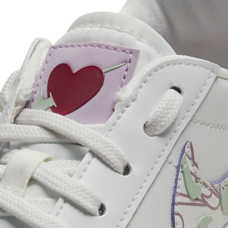 整双鞋采用优质白色皮革主打,鞋侧布满绿色立体 mini Swoosh 与粉色 mini Swoosh 印花的 Swoosh ,凸显出清新甜美的视觉效果。