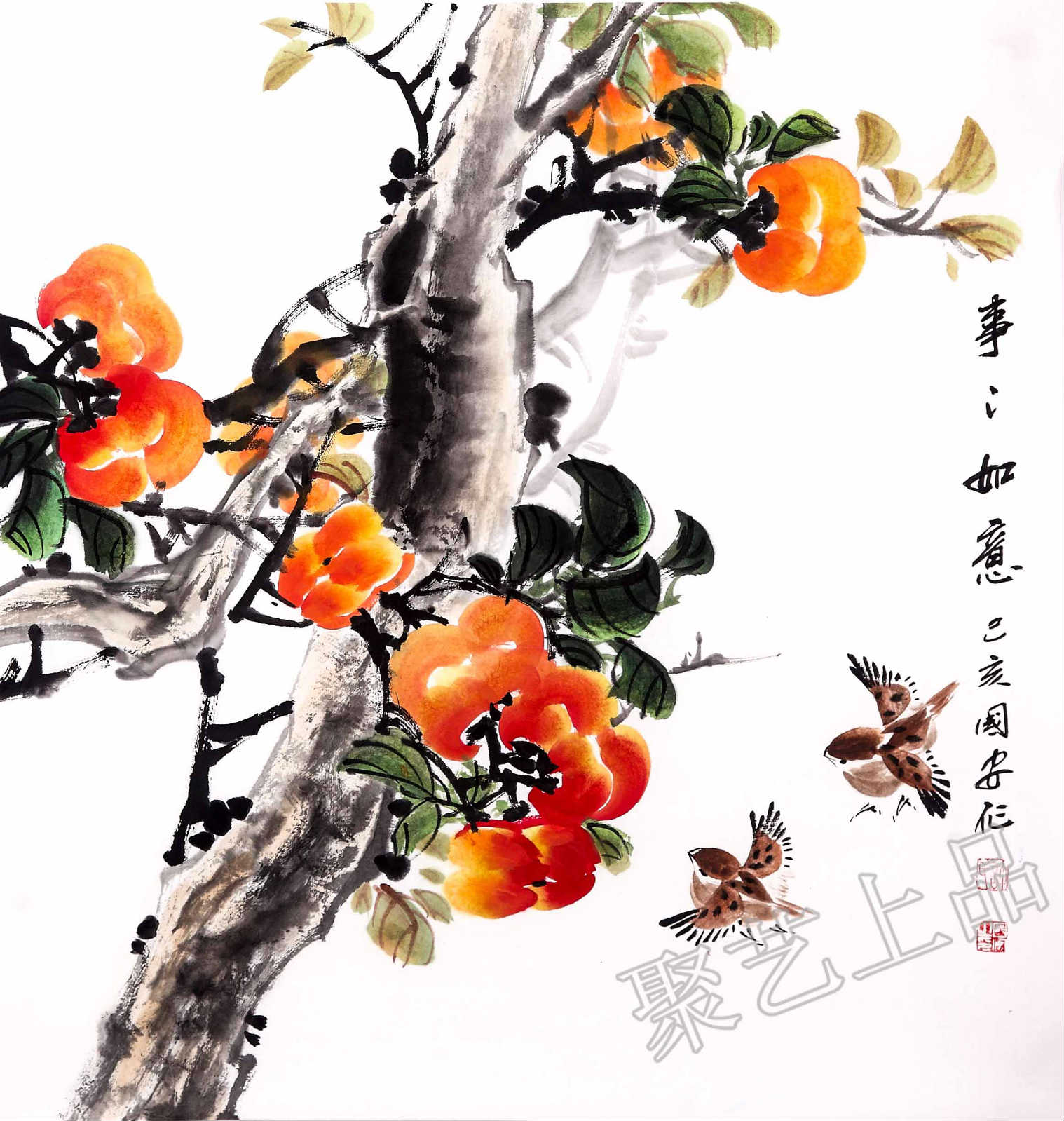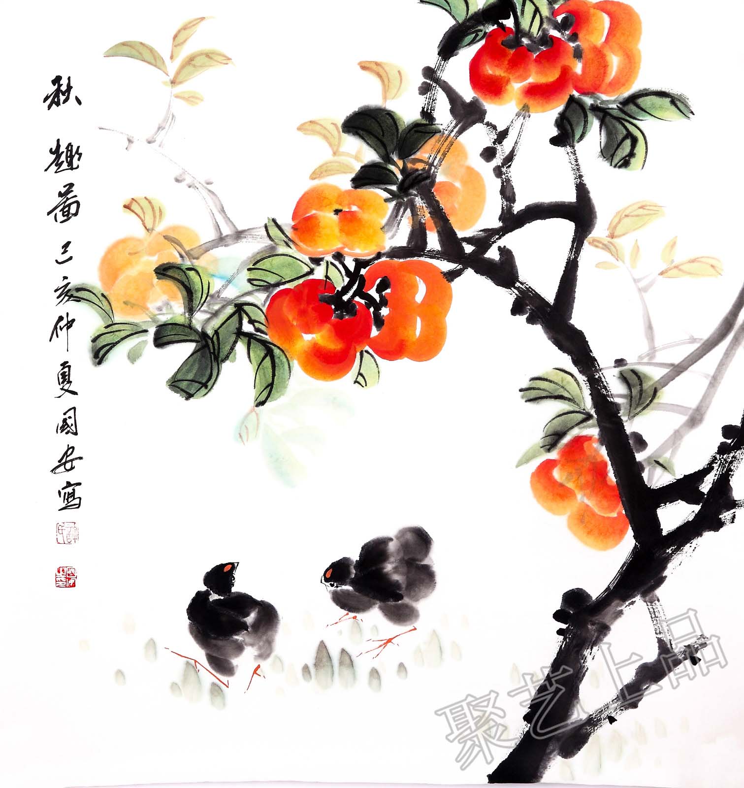 由于柿子代表着吉祥、丰收、喜庆、如意,因此也称为了画家所钟爱的一大绘画题材。