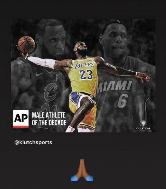 詹姆斯本人倒是比较谦逊,他转发了相关消息图片,以双手合十表情附文。