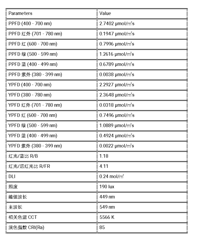二是用光合光子通量密度PPFD表示(umol/m2s),主要用于人造光源和太阳光对植物光合作用的研究。
