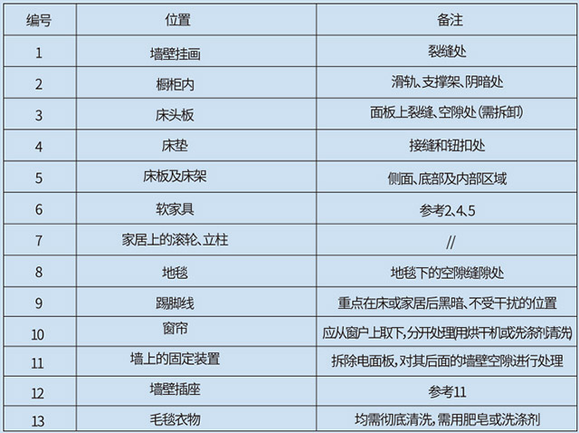 臭虫喜欢生存在床板夹缝中,因此检查床,最好是将床翻转过来,检查所有的接口缝隙处有无臭虫;沙发如果是皮质沙发,臭虫是不喜欢的;如果是布艺沙发要翻过来看看,里面的缝隙处有无臭虫,臭虫喜欢躲在这些细小的缝隙里,因此检查时可借助强光手电筒对着缝隙查看。