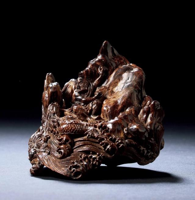 沉香拍卖榜第21名 韩智华作品 海南包头雕降龙罗汉沉香摆件