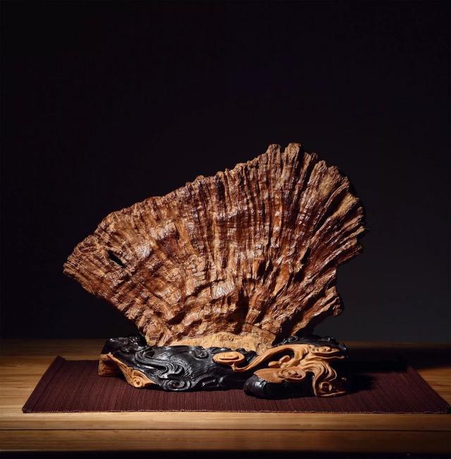 沉香拍卖榜第13名 越南横丝红土沉香雕扇形摆件