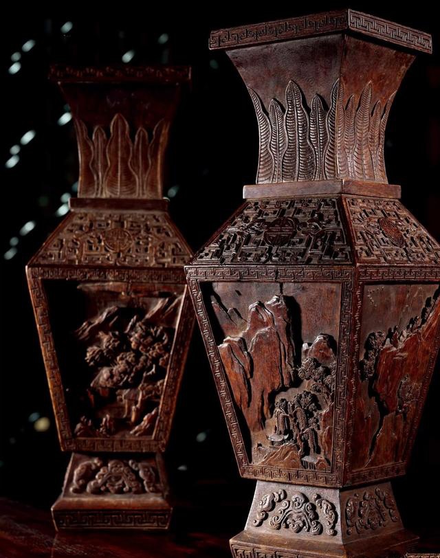 沉香拍卖榜第29名 清乾隆 沉香雕开光松山垂钓纹方瓶