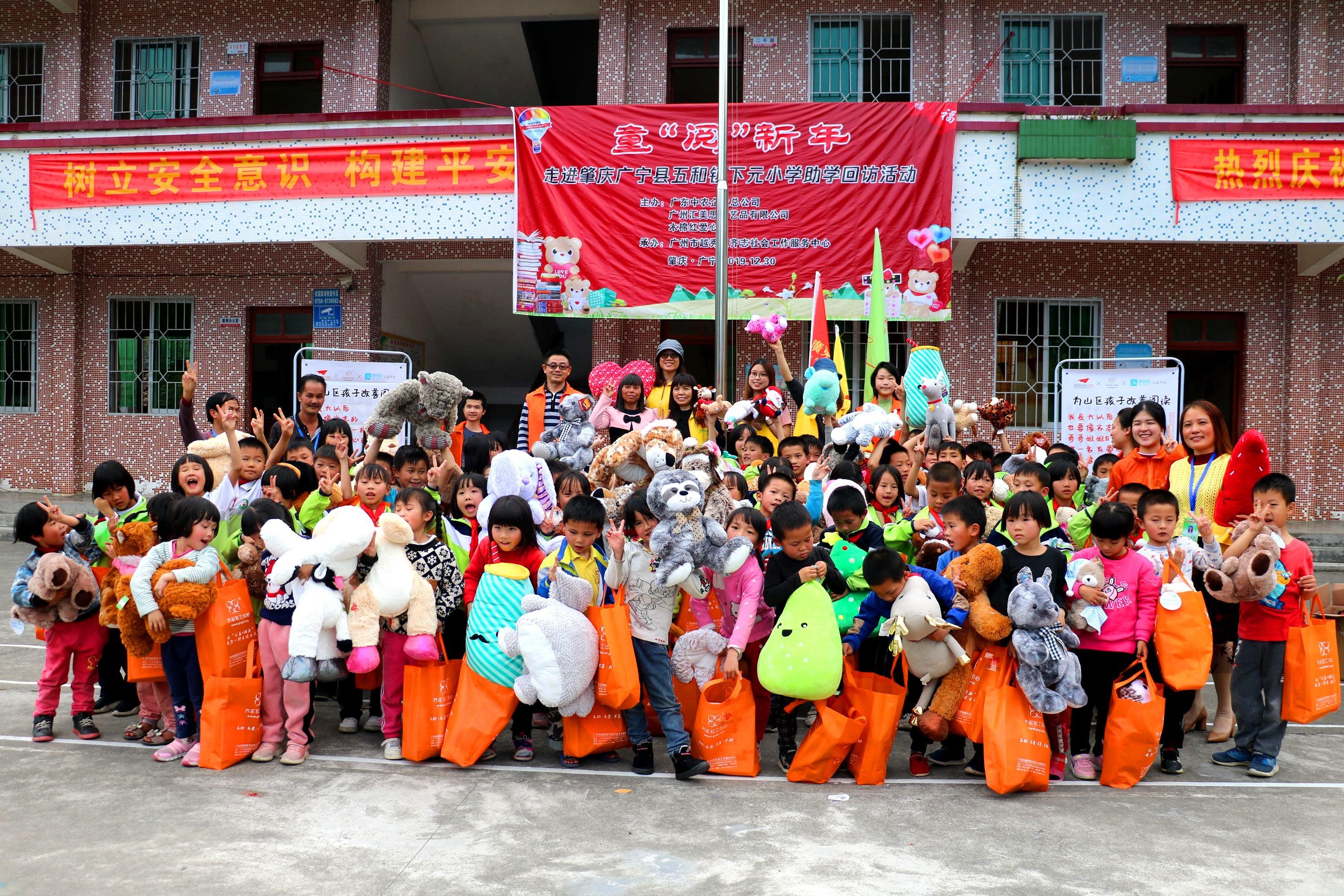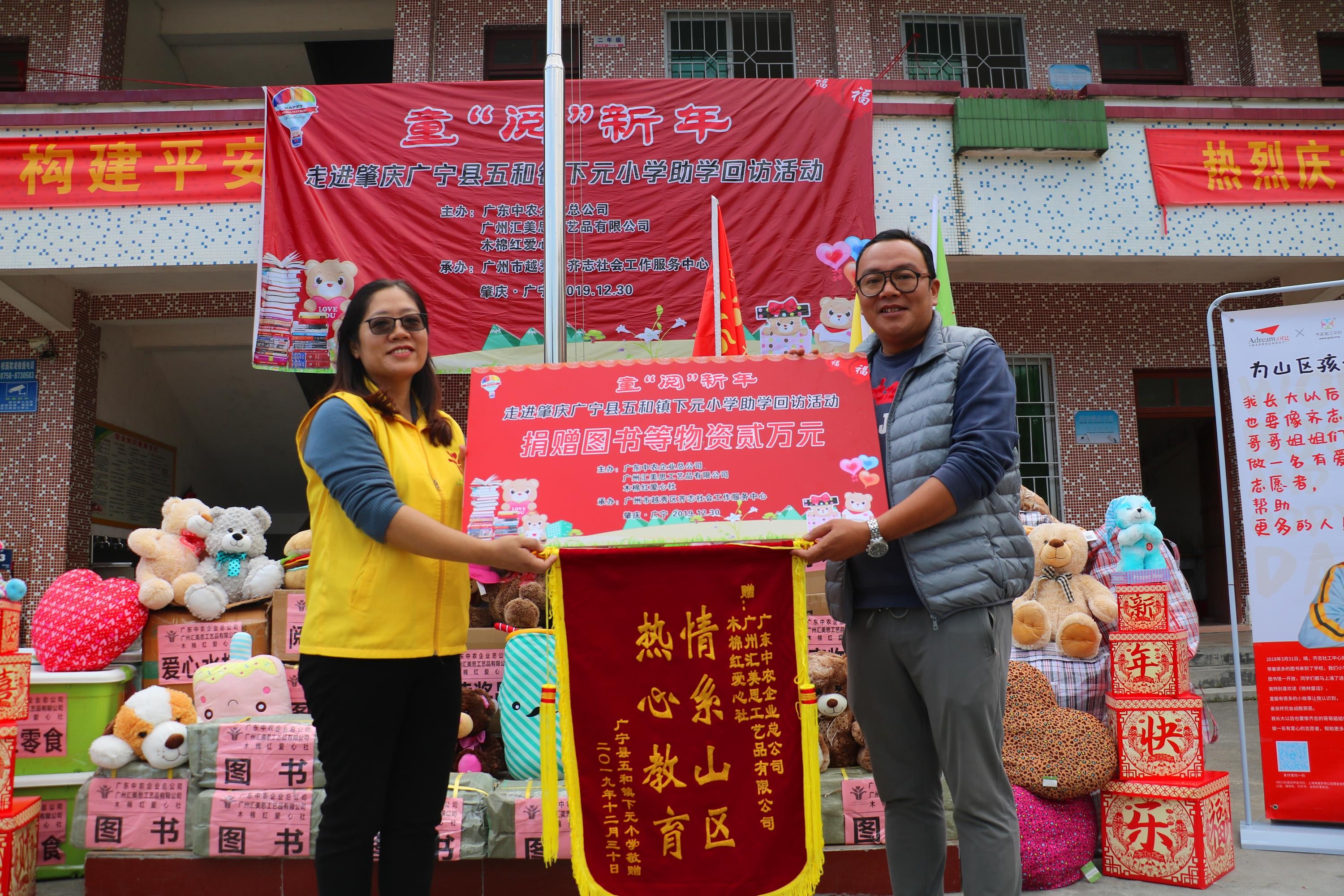 从2017年6月起,木棉红爱心社已经连续前往广宁洲仔镇清桂小学、广宁五和镇下元小学、怀集甘洒镇小布小学三年资助了3家“齐志公益书屋”,本期是继9月清桂小学回访活动之后的第二次助学回访活动。 2019年12月30日,广东中农企业总公司、广州汇美思工艺品有限公司和木棉红爱心社不仅为下元小学带来了丰富的图书、学习套装和体育物资;而且还非常用心的为每一位小朋友准备新年贺卡、零食大礼包和毛绒公仔;每一位拿到礼物的孩子都露出洋溢的笑容。