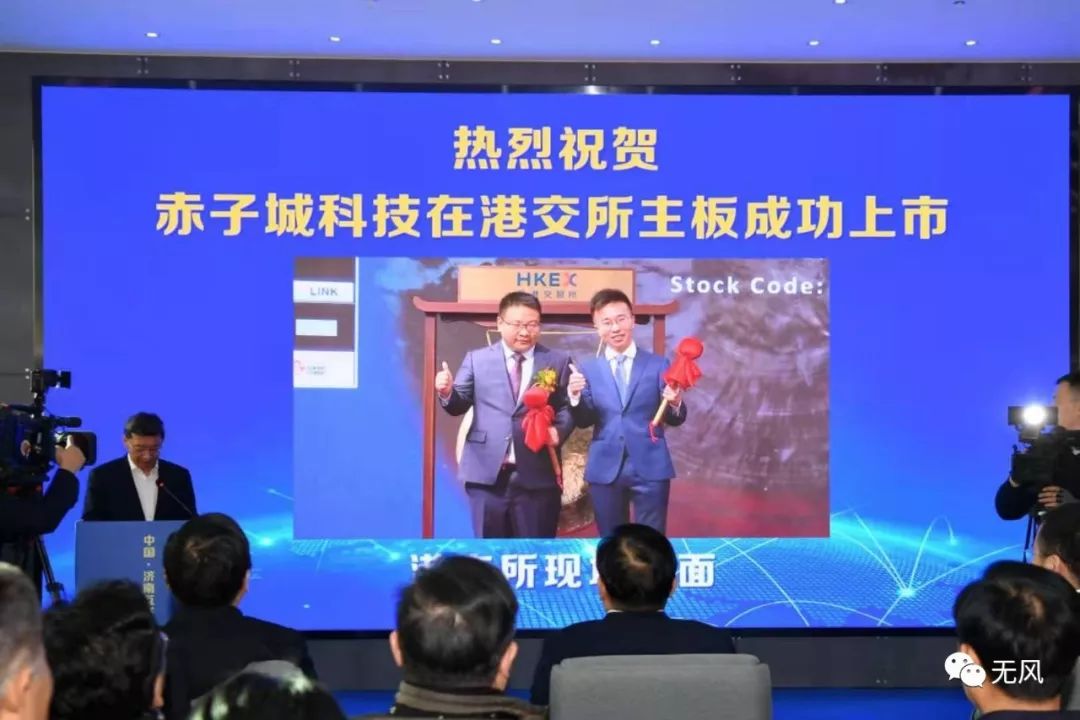 2019年12月31日上午,赤子城科技在港交所举行“敲锣”上市仪式,在公司总部济南,山东省委常委、济南市委书记王忠林与赤子城副总裁王新明共同为“中国·济南互联网出海产业园”揭牌,并与赤子城创始人、总裁刘春河进行了济南-香港两地视频连线互动。