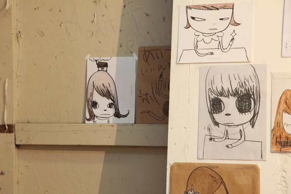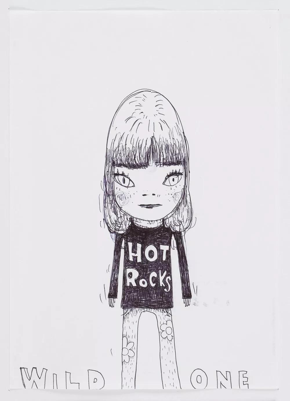 纸上绘画是奈良美智即兴表达真实情感的重要工具,