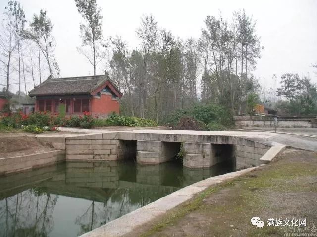 端亲王园寝坐北朝南,园寝前有一道马槽沟,豆渣石泊岸,正中三孔平桥一座。