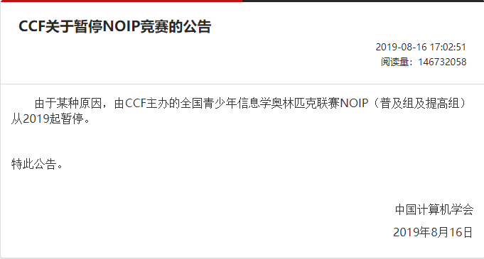 NOIP全称是全国青少年信息学奥林匹克联赛(National Olympiad in Informatics in Provinces),也是省级联赛。于2019年8月停办。后以 CSP-J/S的形式取代原有的NOIP。