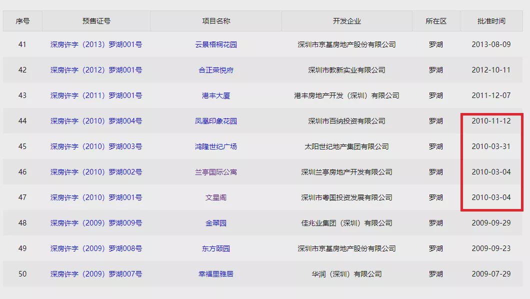 提一句,与福田相反,罗湖2010年获批预售证的新盘住宅只有4个,罗湖区的楼盘涨幅并没有南山和福田那么迅猛,排名最后。而且,这个势头2019年也有延续,罗湖2019年入市项目更夸张,仅有2个。入市项目少,涨幅也不看好!
