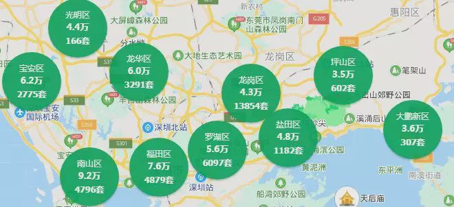2010年深圳楼盘大多集中在罗湖区,福田区,南山区,宝安区,龙岗区,盐田区六区。此时的光明区、坪山区、大鹏新区还在萌芽发展阶段,更不用提楼市的布局了!