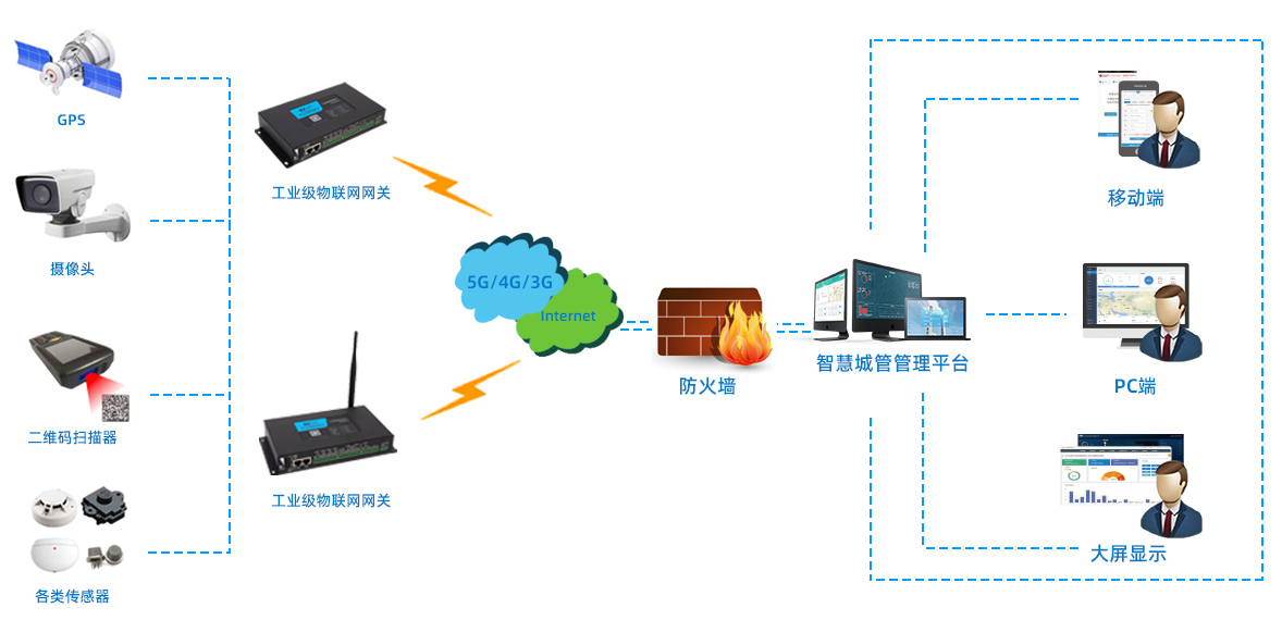 感知层:感知层负责对智慧城管中各项数据的采集,主要有各类摄像头、GPS、二维码扫描器、其他各类传感器等设备组成。