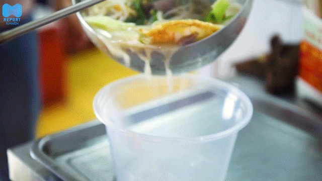 每天新鲜熬煮的大骨汤,一熬一大桶。客人点单后炉灶马上开火,舀一大勺的汤底到锅中,加面倒料。煮的过程放入酸笋和葱头油,经过几分钟的时间,酸笋浓郁的香气直接扑鼻而来!