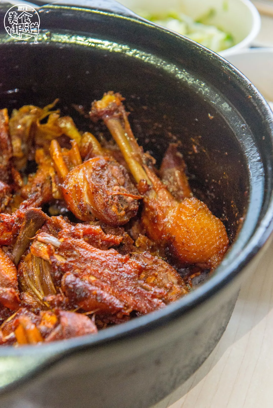 不夸张的说,酱汁的香气已经浸润到每一块鸭肉中。就着米饭吃超级下饭,连锅底的姜片也好吃到不想放过!