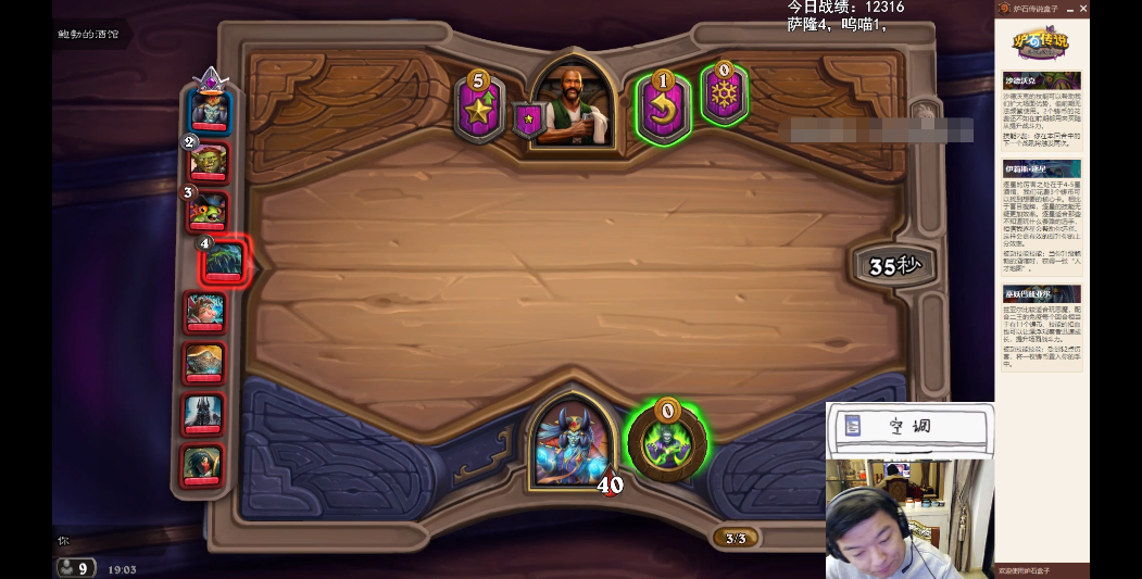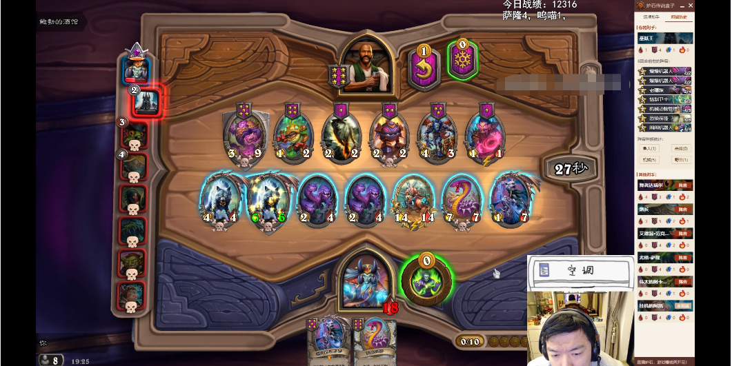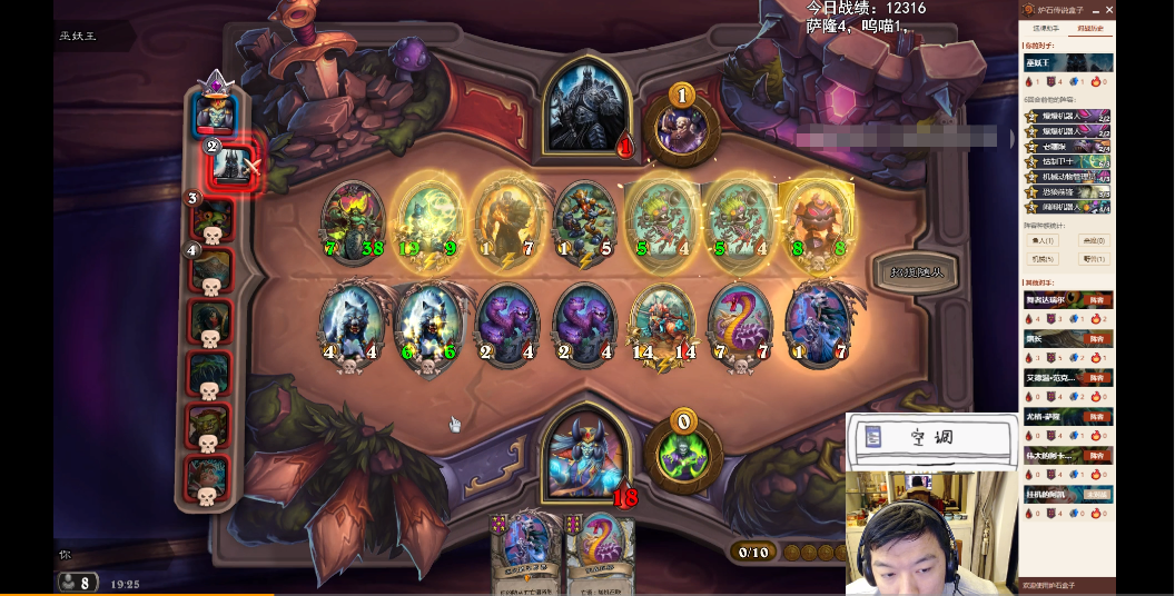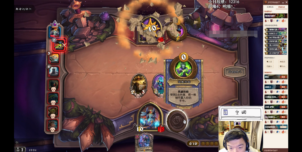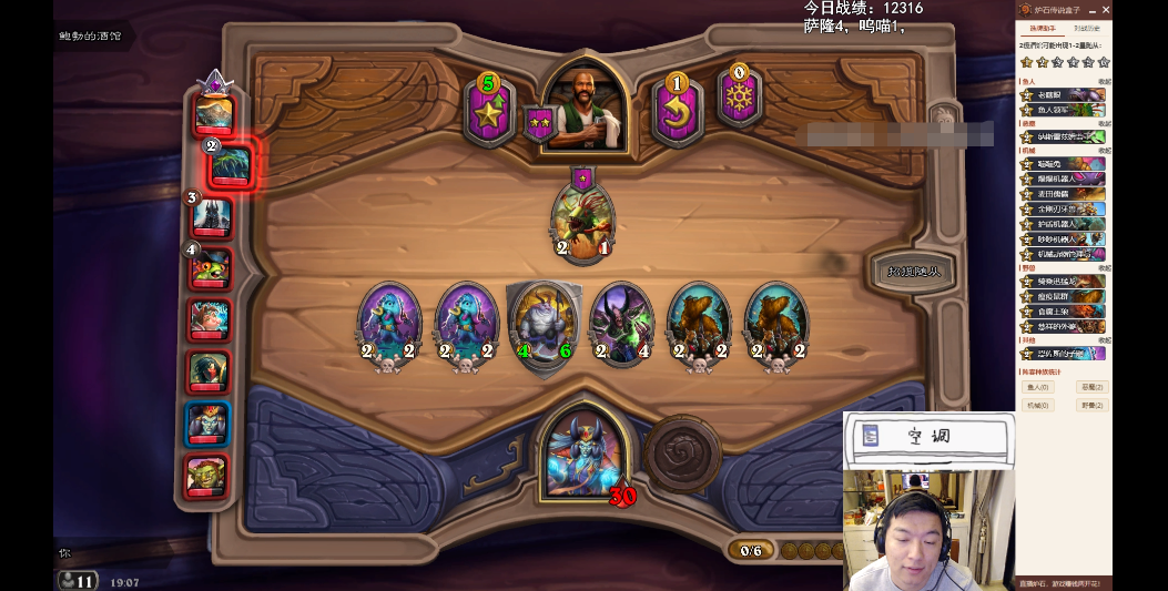 在瓦娘的前面回合,也是遵循着“拿最强的棋子”的原则,选择了恩佐斯的子嗣、矮劣魔和瘟疫鼠群等3星及其以下的优质随从。在保证不被对手“入血”的情况下,尽量把英雄的血量花在更多的转化成铸币上。于是随着滚雪球的效应,实际上很多的后期劲敌都被瓦娘提前抬出场。