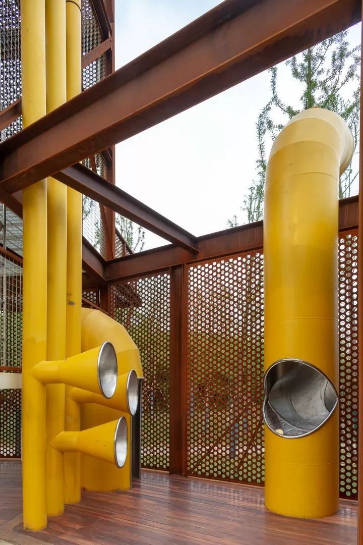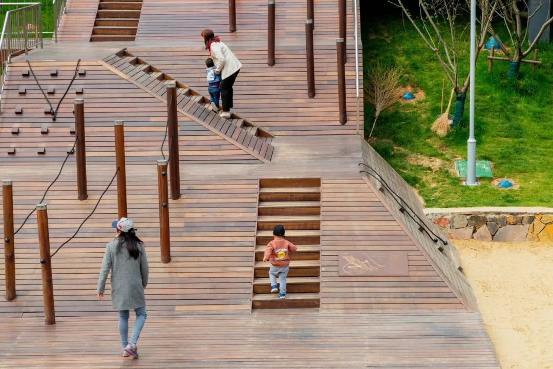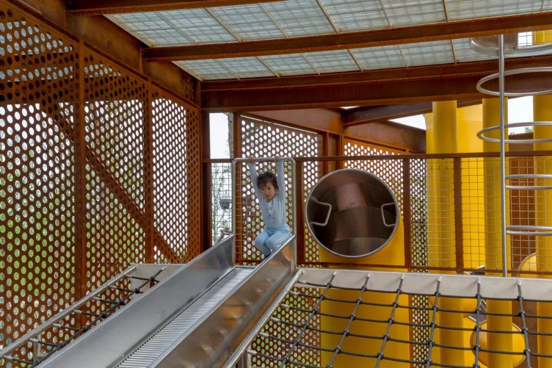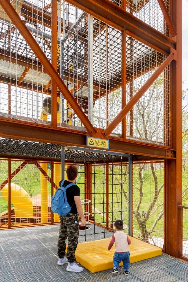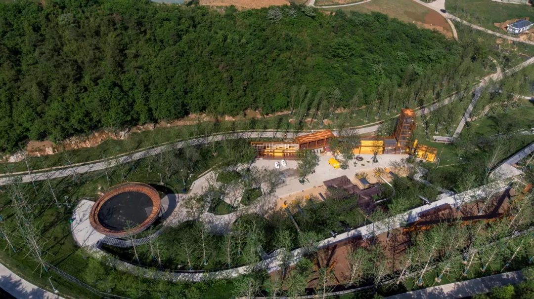 矿野拾趣乐园原为采石场堆放废料的地方,原有植被和水文已被完全破坏。根据现场条件,在恢复水文生态加固山坡基础上,我们将攀爬、滑梯、秋千滑索、蹦床等等活动设施组合在一起,形成矿坑特色的游憩场所。这是该项目目前最先完成的部分。