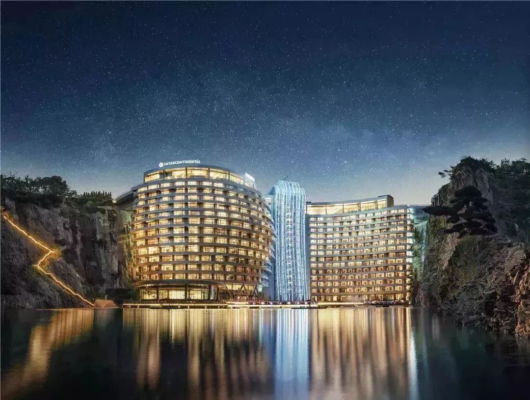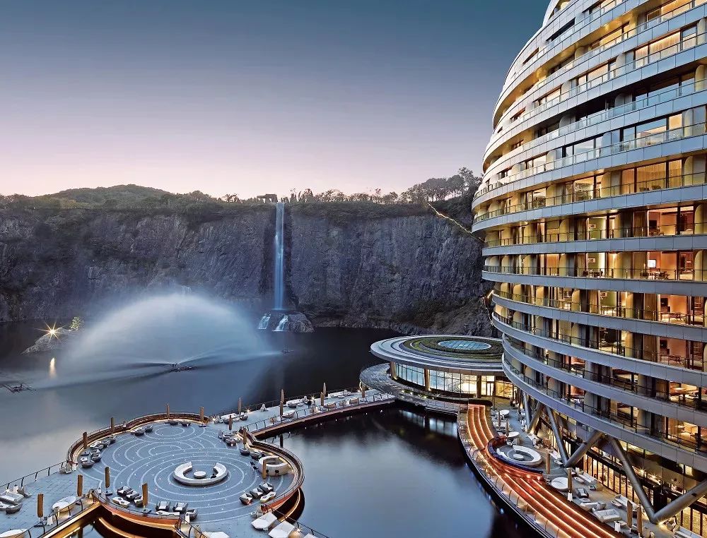上海佘山国家公园南侧,有一个80多米深、约5个足球场大小的采石坑。这曾是一个历史难题,但现在,目前世界上海拔最低的豪华酒店将在这个深坑里横空出世。