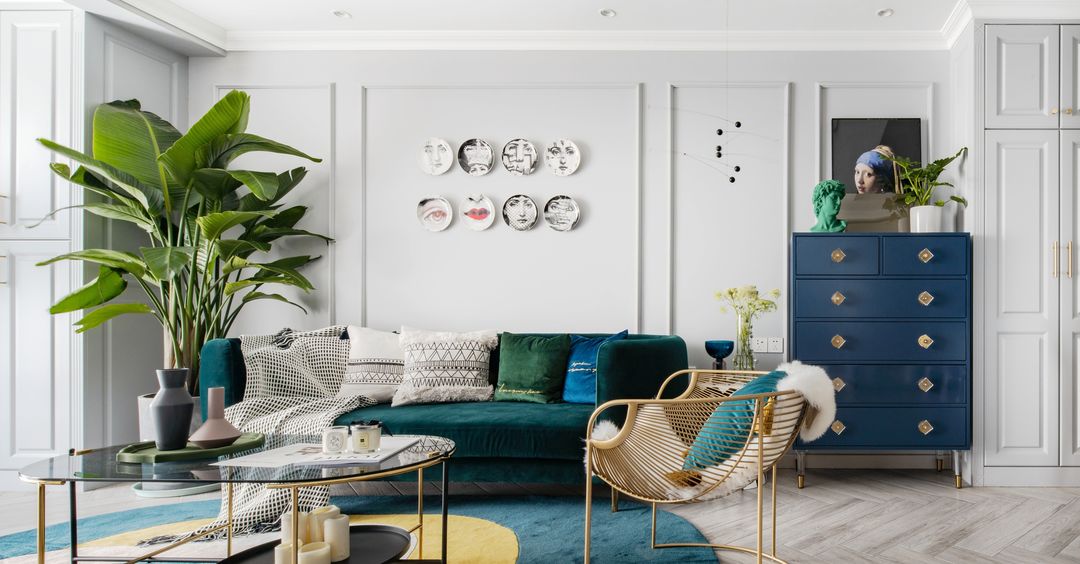 客厅充满了女主人偏好的元素例如,绒面、黄铜、单人躺椅等非常有质感的元素。整体氛围充满了感官体验,拥有品质的同时也包含着生活的味道。