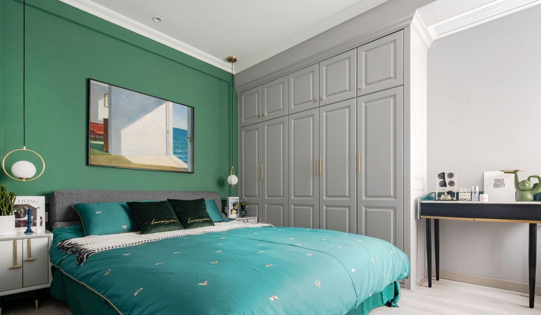 客房与主卧风格保持一致。同时客卧的衣柜和吊柜也为房屋增加了日常储物的可能。
