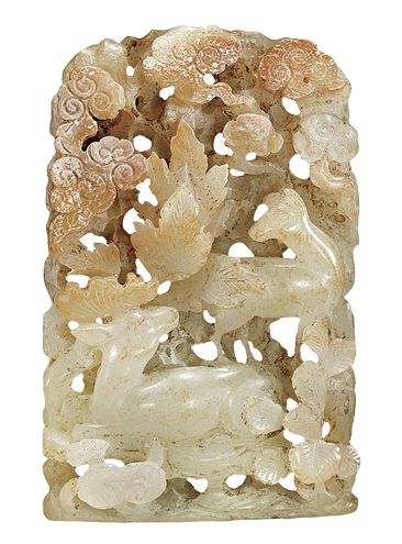 青白玉镂空秋山饰