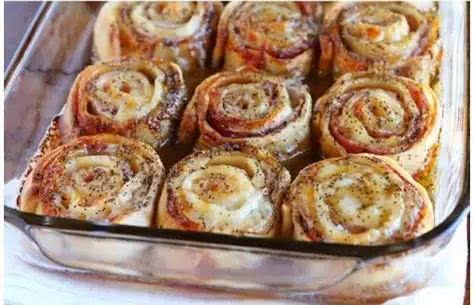第三步:烤出来的玫瑰形状面包,一口一个刚刚好,肉味和芝士片完美融合在一起,一下子就消灭光啦!