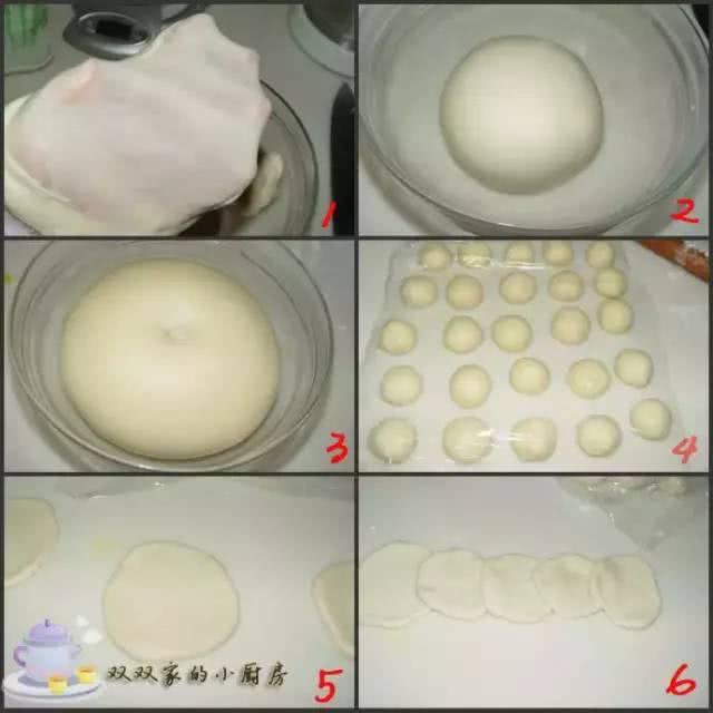 第一步:将面皮切成三角状,如图所示交叠在一起,