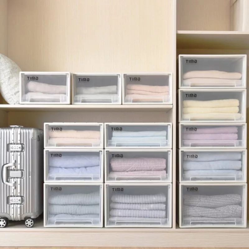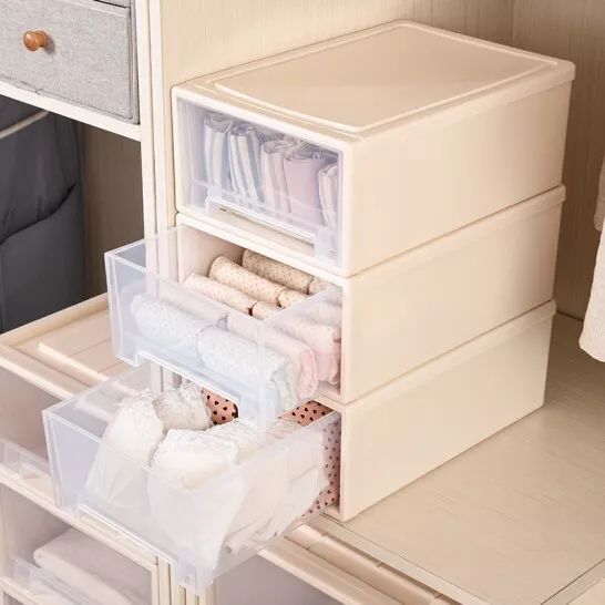 同样是抽屉式的收纳柜,多个选择。这款收纳柜尺码多样,适合储存不同的衣物,方便取用,能充分利用空间。