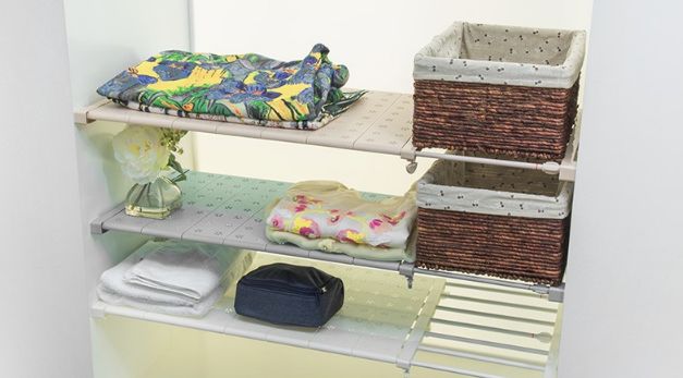 这款免打孔衣柜收纳分层架使用ABS+喷塑碳钢管,保证了承重和稳定性。加大软脚垫在架子延伸之后能稳定地卡住它,不伤衣柜。加装了隔断之后衣柜能放更多的被子了。