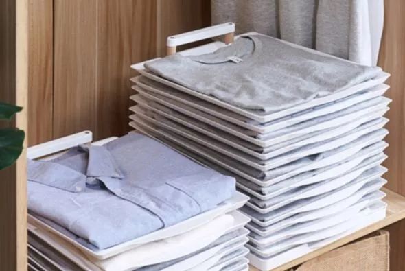 如果把没叠好的把衣服收进收纳柜,那么恭喜你,你得到了一件拿出来皱巴巴的衣服,这款叠衣板解决了这个问题。