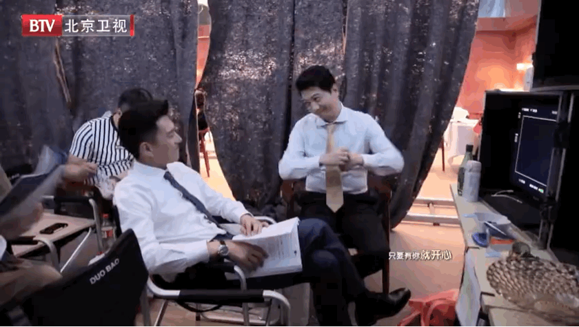 对戏时田雨也向何赛一样搞怪,而靳东则是满含笑意——