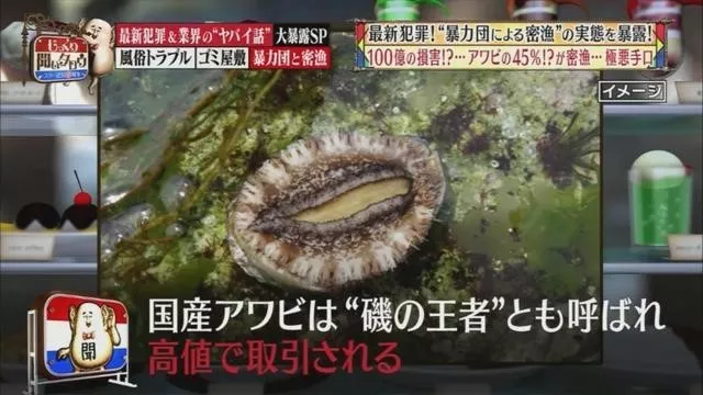 根据估计,日本的市面上有45%的鲍鱼就是黑帮盗猎来的,是他们很重要的收入来源。因为捕鱼不要求任何工作经历或学术背景,也不用登记身份证、或是提供银行账户,所以就成了黑帮施展身手捞鱼的舞台。