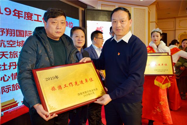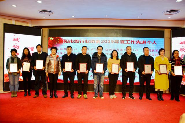 洛阳市旅行社协会2020年旅游工作会工作会现场,协会对2019年对先进工作个人、先进工作单位、突出贡献人员及协会战略合作景区、单位进行了表彰和授牌仪式。