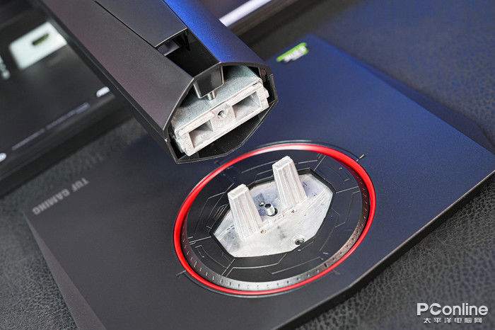 看到这个支架和支架底座,想必大家都很熟悉了,在华硕电竞显示器上经常见到,粗壮扎实的支架+方正配重的底座实属少有。