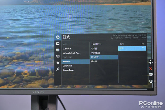如果需要多个显示器拼接显示画面,华硕 VG279QM提供显示对齐功能,方便玩家调整屏幕拼接位置。