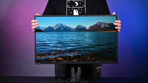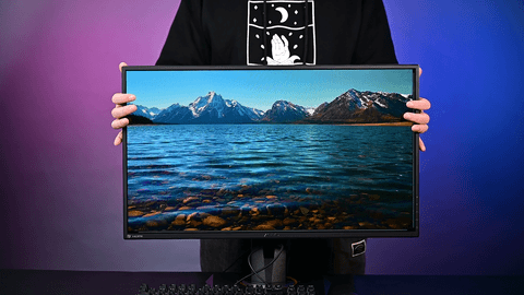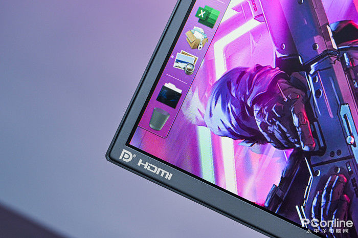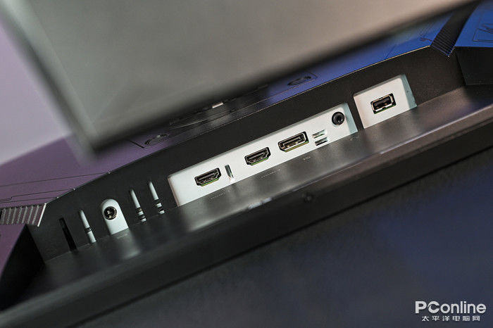 下边框比其他三边稍宽,但也绝对比很多其他显示器来的窄。左下角有DP、HDMI的标志,彰显接口的高性能。
