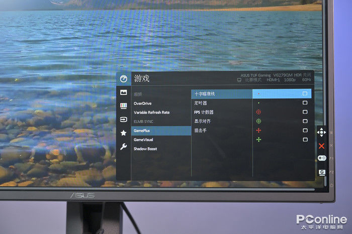 华硕 VG279QM拥有许多游戏辅助功能。其中,准星功能就非常实用。预设6种准星备选,给到玩家足够多的选择。