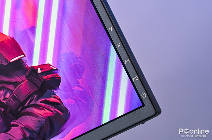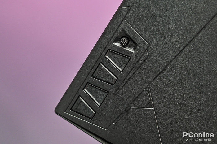 即使采用窄边框设计,右边框依旧打上了OSD按键的丝印标示,提示OSD按键的对应功能。而对应到显示器背面,是不规则梯形的OSD按键和五维按钮。按键反馈清晰,让四个?手指一一对应,能实现快捷操作。