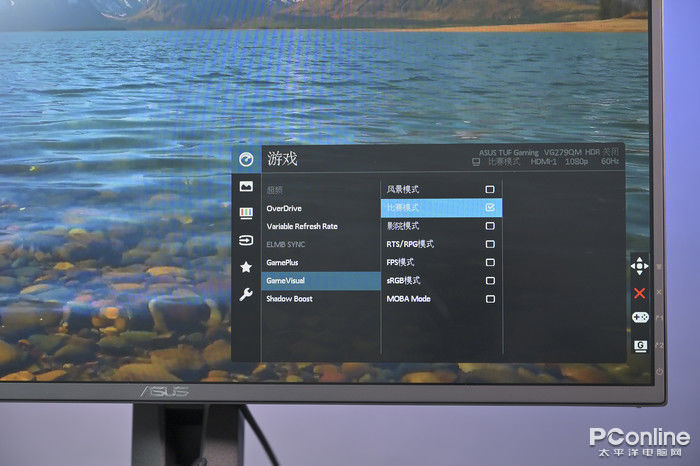 显示器预设了7种显示模式,其中有风景、比赛、FPS、RTS等模式,大家可通过图例感受一下各种模式的差异。非常丰富,方便玩家找到适合的显示风格,获得更好的显示画面。