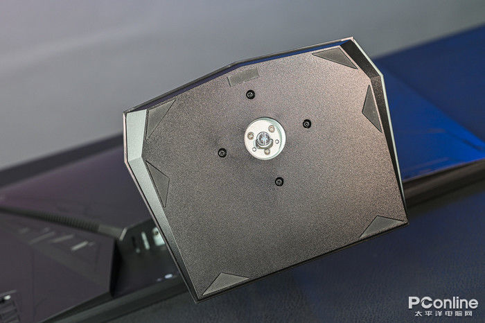 显示器主体和支架出厂就组装好了,方便玩家组装,同时支持VESA标准的壁挂标准,方便玩家使用自用支架。支架主体的上方依旧标示有支架的四项可调节参数,依旧是一眼看不清,增加神秘感。