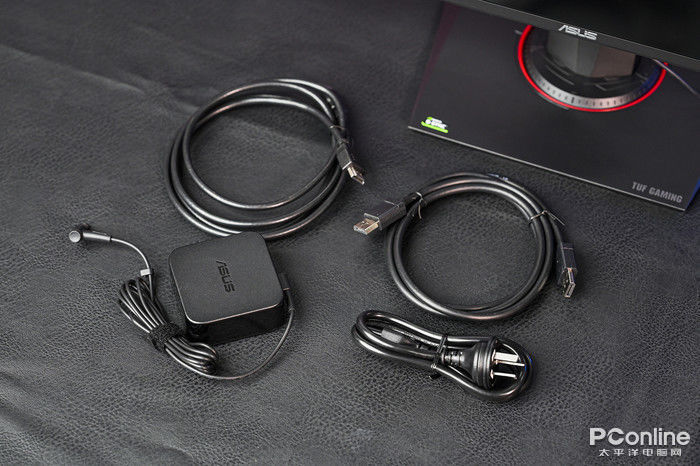 首先是华硕 VG279QM的配件部分,箱内包含屏幕连支架、支架底座之外,还有HDMI线、DP线、电源线和说明书、保修卡,比较常规。