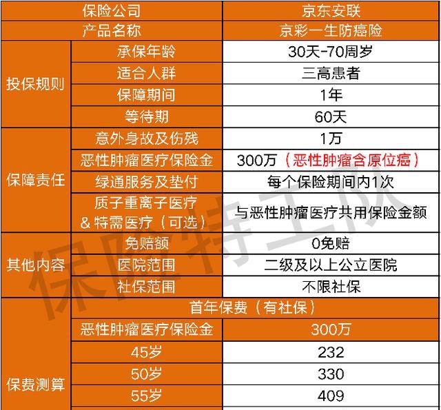 ①高保障,低价格,0免赔。50周岁,保费最低仅需330元,就可以享受300万的恶性肿瘤医疗保障。京彩一生防癌险的价格在市场上几无敌手;