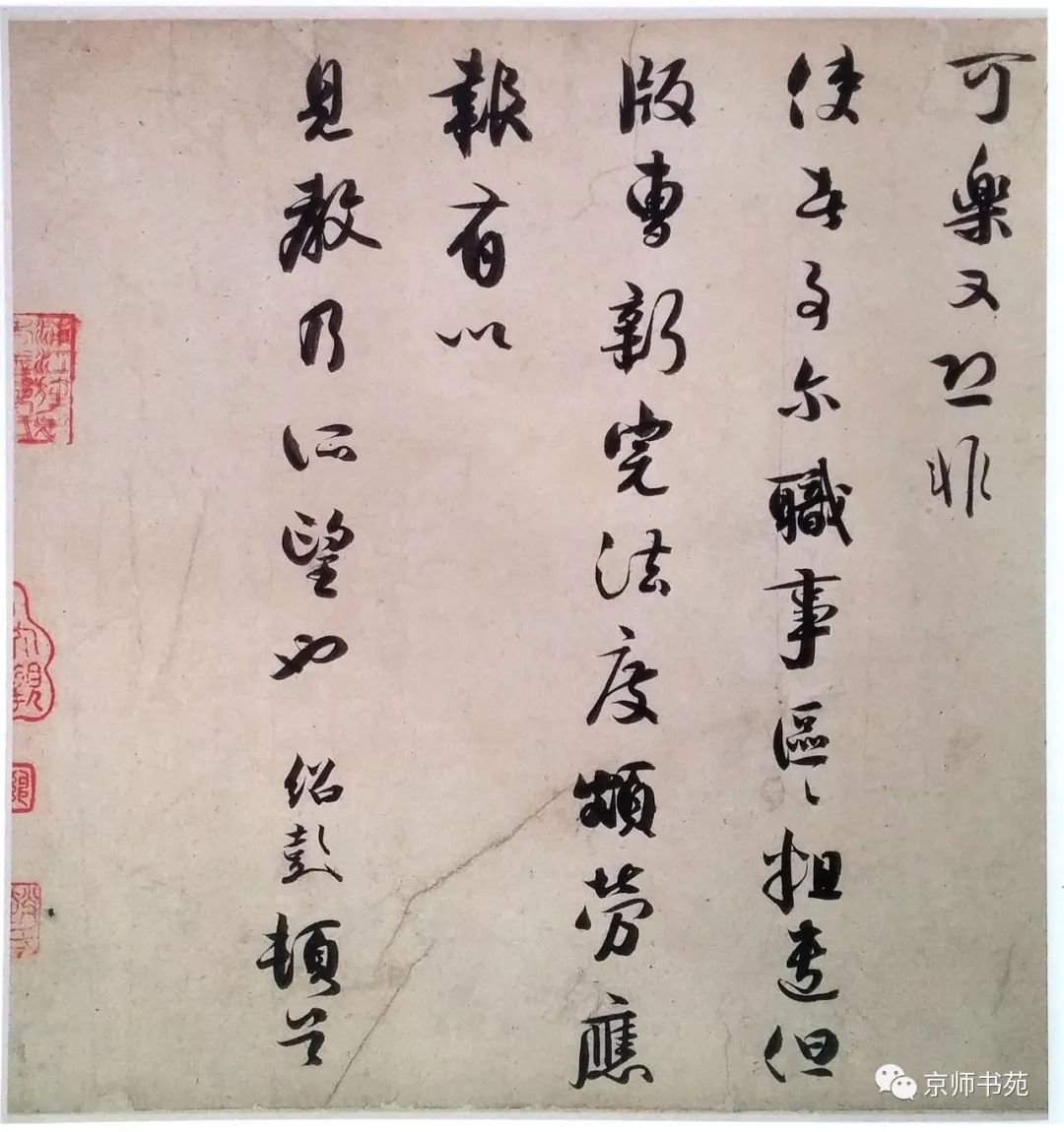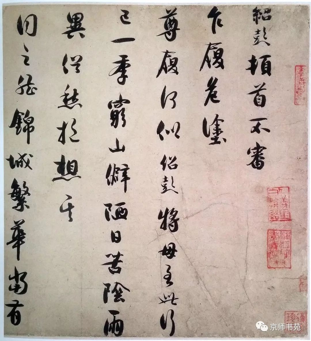 此帖用笔圆润、含蓄、精到,结法内敛、锋藏不露,书风温雅秀润,酷近于王羲之的《初月帖》,从容不迫,深得“二王”遗韵,是薛绍彭传世书作精品。