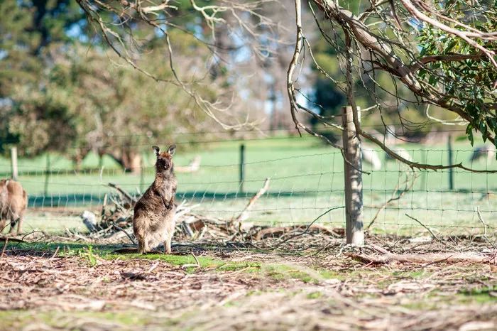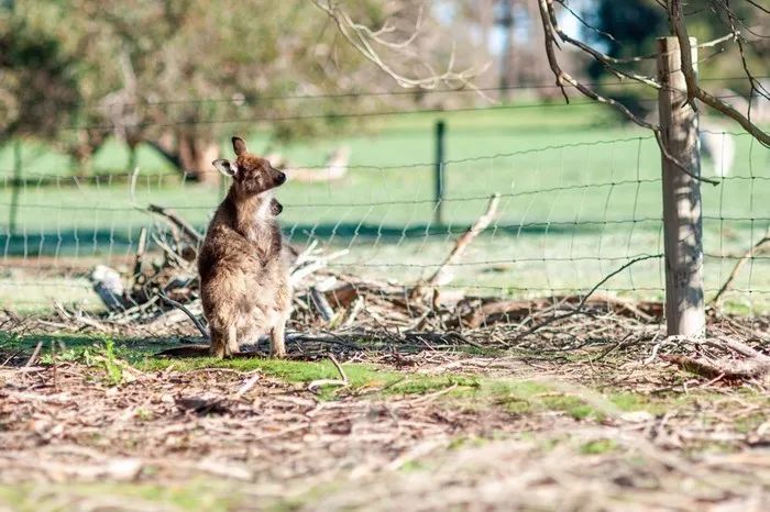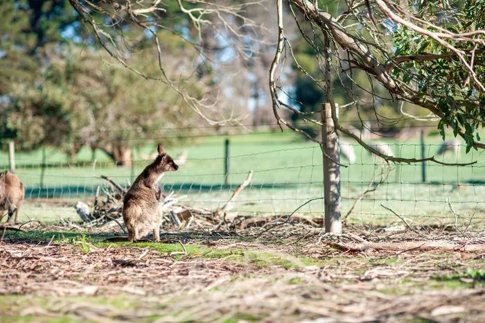 早上起来又看到几只袋鼠越过了保护网在离我们很近的树上吃东西,发现袋鼠们还有些喜欢挠痒痒。
