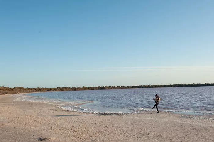 快到Horsham的时侯我们又经过了一个粉糊loch lel(勒尔湖),同我们看到的第一个粉湖一样,远处有呈现一些紫红色,真的搞不懂为啥别人游记里发的都那么粉的好看呢...,这里倒是可以飞无人机,也许是无人机视角看到的更粉一些吧。
